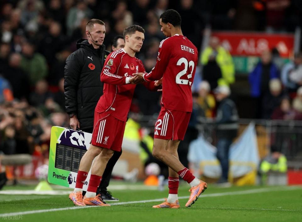 由于4连败的巨大压力,利物浦主帅斯洛特终于没胆再继续豪赌维尔茨,而是重启上赛季英超夺冠的“迈巴赫”中场组合,这位转会费高达1.36亿欧元的德国天才,只能替补席待命。
